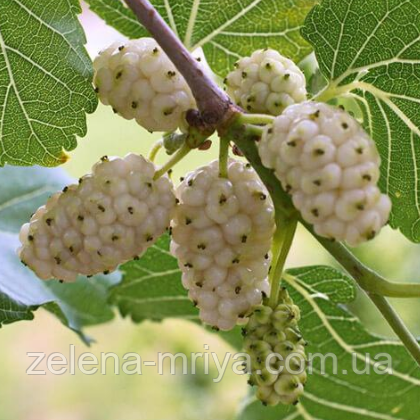 Шовковиця Біле перо - великоплідний сорт шовковиці з білими плодами.Раннього і тривалого терміну дозрівання Ягода 4-5 см. в довжину і 2 см. шириною,М'які ягоди довжиною до 5 сантиметрів наповнюються соком, а солодка м'якоть просто тане в роті. Насичена смаковими якостями ягода не залишає слідів на руках та одязі. Врожайність висока. Період дозрівання ягід: червень-липень.